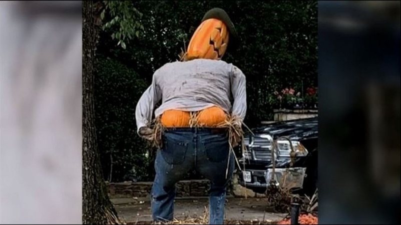 While some neighborhoods have people complaining about Halloween decorations being too scary or not very tasteful, Mike O’Neill, a local resident of North Fulton County in Georgia received a complaint from an HOA board member telling him that his rear-end facing pumpkins decoration display is offensive.