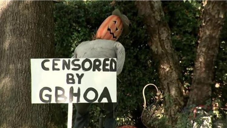 But, being the good neighbor that O’Neill appears to be, he has made the pumpkins display decoration less offensive by covering the rear end area of the pumpkin Halloween decoration with a sign that says “CENSORED BY GBHOA.”